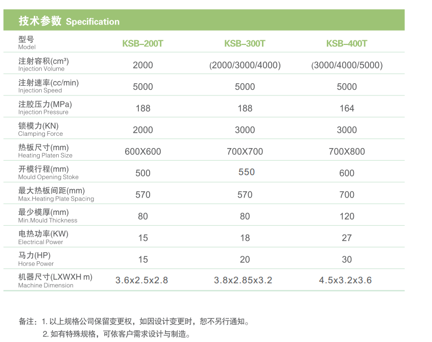 先進先出臥式硅膠射出硫化機 KSB 200-500(Tons)類別:全自動硅橡膠硫化機